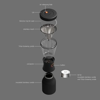 Для приготовления возьмите 56-85г молотого кофе и 3 стакана холодной фильтрованной воды Снимите крышку Добавьте в фильтр 1/3 часть кофе и осторожно залейте его 1/3 частью воды. Важно, чтобы вода прошла через весь насыпанный в фильтр кофе Повторите то же самое еще два раза (весь процесс заваривания займет не более 4 минут) Закрутите крышку, затем закройте клапан на крышке и немного потрясите Оставьте настаиваться на 12-24 часа Через 12-24 часа откройте клапан на крышке и нажмите кнопку на корпусе - готовый кофе сольется в сервировочный термос Снимите верхнюю часть с фильтром с сервировочного термоса и добавьте в термос лед Закрутите крышку на термосе Вы сможете насладиться готовым кофе где угодно: возьмите Asobu Cold Brew на прогулку, в машину, в офис и даже на пляж!