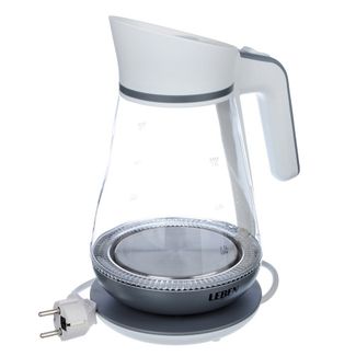 - LEBEN Чайник электрический 1,5л, 1850Вт, скрытый нагр.элемент, автооткл.,стекло-кувшин,LED подсветка белый с серым по выгодной цене 2 613 р. руб.;