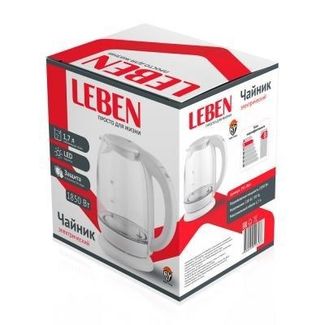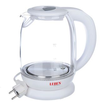 - LEBEN Чайник электрический 1,7л, 1850Вт, скрытый нагр.элемент, автооткл., стекло, поддержание темпер Белый по выгодной цене 2 874 р. руб.;
