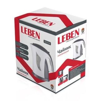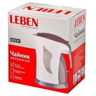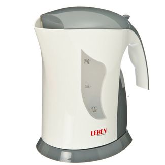 - LEBEN Чайник электрический 1,7л, 1850Вт, спиральный нагр.элемент белый с серым по выгодной цене 1 472 р. руб.;