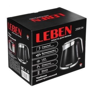 - LEBEN Чайник электрический 1,7л, 2000Вт, скрытый нагр.элемент, нерж сталь по выгодной цене 5 282 р. руб.;