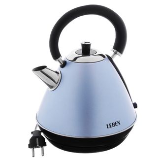 - LEBEN Чайник электрический 1,7л, 2200Вт, нерж.сталь, конус, голубой Голубой по выгодной цене 2 522 р. руб.;