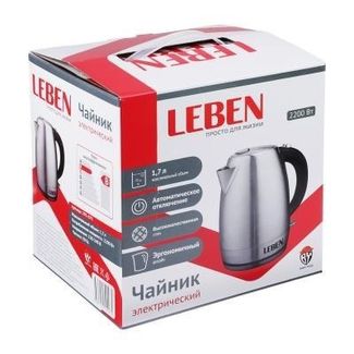 - LEBEN Чайник электрический 1,7л, 2200Вт, скрытый нагр.элемент, автооткл.,нерж. сталь в каталоге Ремонт другой бытовой техники в России;
