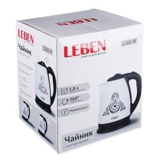 - LEBEN Чайник электрический 1,8л, 1500Вт, нерж. сталь, терморисунок матрешка микс по выгодной цене 1 093 р. руб.;