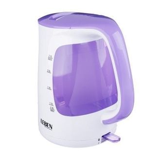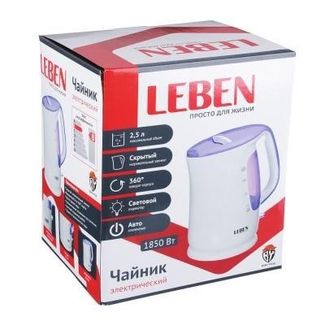 - LEBEN Чайник электрический 2,5л, 1850Вт, скрытый нагр.элемент, пластик белый с фиолетовым по выгодной цене 1 968 р. руб.;