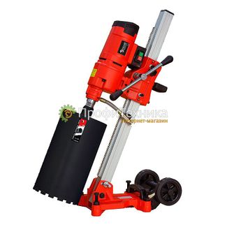Тип привода - электрический, потребляемая мощность 4000 Вт, напряжение 220 В, количество фаз - 1, скорость вращения шпинделя при полной нагрузке 617 об/мин, диаметр сверления 20-200 мм, угол наклона 45 градусов, защита от перегрузки, вес 19 кг. None