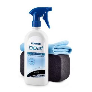 Удобный комплект для защитного покрытия судна: Korrek BOAT TFC UV-Coating (700 мл), губка и ткань из микрофибры.