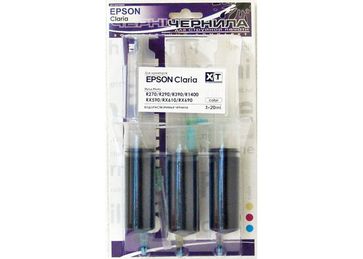 Заправочный комплект для EPSON Claria Color 3x20 мл Ink-Mate R270/R290/R295/R390/1410 МФУ TX700W/TX800/TX50/TX59/RX590/RX610/RX615/RX690 (EIM290C) ЗАПРАВОЧНЫЙ КОМПЛЕКТ для принтеров Epson - это продукт, предназначенный для самостоятельной заправки перезаправляемых струйных картриджей. Данный комплект совместим со всеми принтерами Epson использующими чернила Claria. На обороте каждого заправочного комплекта находится пошаговая инструкция по заправке вашего картриджа с фотографиями. Одного ЗАПРАВОЧНОГО КОМПЛЕКТА (3х20мл) черного цвета достаточно, чтобы заправить ВОСЕМЬ!!! картриджей Epson, а один заправочный комплект для цветных картриджей (3х20мл) позволит Вам ТРИЖДЫ!!! заправить основные цвета Вашего принтера. None Есть доставка.