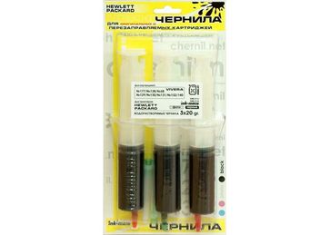 ЗАПРАВОЧНЫЙ КОМПЛЕКТ для принтеров HP - это продукт, предназначенный для самостоятельной заправки струйных картриджей.На обороте каждого заправочного комплекта Вы найдете пошаговую инструкцию по заправке вашего картриджа с фотографиями.Аргументы для покупки:Емкость ОДНОГО оригинального картриджа черного цвета в среднем составляет 7 мл. СУММАРНАЯ емкость ЗАПРАВОЧНОГО КОМПЛЕКТА черного цвета составляет 60 мл.Одного ЗАПРАВОЧНОГО КОМПЛЕКТА (3х20) достаточно, чтобы заправить 8 (ВОСЕМЬ!!!) картриджей.С цветными картриджами ситуация похожа.Емкость ОДНОГО цветного (синий, красный желтый) картриджа в среднем также составляет 7 мл.Емкость ОДНОГО шприца в комплекте любого из трех цветов составляет 20 мл. Несложно догадаться, что каждый шприц из ЗАПРАВОЧНОГО КОМПЛЕКТА позволит Вам ТРИЖДЫ!!! заправить основные цвета Вашего принтера. None Есть доставка.