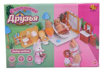 Набор мебели для ванной комнаты ABtoys Счастливые друзья с аксессуарами включает в себя все необходимые для ванны и туалета предметы мебели. Гарнитур изготовлен из качественного пластика, станет прекрасным дополнением к кукольному домику, позволяя разнообразить его интерьер. Минимальная сумма заказа 1500 руб. Возможен самовывоз. Есть доставка.
