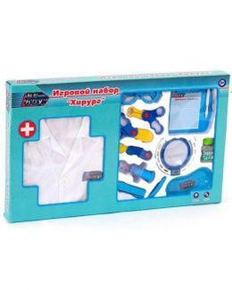 Игровой набор Beboy Хирург со световыми эффектами состоит из докторского белого халата и шапочки, а также пластиковых медицинских инструментов. В набор входит скальпель, зажим, ножницы, шприц, пинцет, планшет с историей болезни, карандаш, пузырёк с лекарством, зеркало, ванночка и фонарик. Длина медицинского халата около 55 см. Минимальная сумма заказа 1500 руб. Возможен самовывоз. Есть доставка.