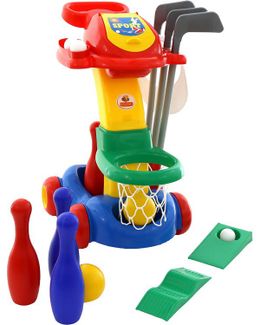 Игровой набор "Спортивный" торговой марки "Полесье" включает в себя атрибуты для следующих игр: баскетбол, гольф кепка для гольфа 3 клюшки для гольфа 3 мяча мостик лунка , кегельбан кегли 5 шт. 2 мяча . Благодаря своей многофункциональности, игровой центр подойдет для одиночных игр и для игр целой компании детей, поэтому он удобен для организации спортивного уголка в детском саду. Играя с любой из предложенных игр, ребенок развивает двигательные рефлексы и навыки сноровка, ловкость, быстрота реакции , а командная игра развивает у ребенка морально-волевые качества. Наличные, Visa/MasterCard, Яндекс.Деньги, WebMoney Возможен самовывоз. Есть доставка.
