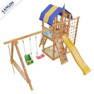 • Материал: древесина. • Внешние размеры: 380х440х320 см. • Размер площадки не менее 580х710 см. • Длина горки: 300 см. • Вес: 213 кг. None Есть доставка.