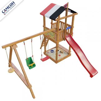 • Материал: древесина. • Внешние размеры: 380х410х320 см. • Размер площадки не менее 580х710 см. • Длина горки: 300 см. • Вес: 181 кг. None Есть доставка.
