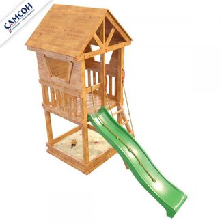 Внимание! Товарный знак запатентован. Конструкция запатентована. Детская игровая деревянная площадка для частного использования, для детей от 4 до 9 лет, на которой расположены элементы игрового оборудования с целью организации содержательного досуга детей, способствующие физическому и умственному развитию, оказывающие при этом благоприятное воздействие на социальную адаптацию ребёнка. Материал: Каркас изделия изготовлен из клеёного бруса лиственницы, ограждение и иные элементы из массива сосны. Покрытие: Для моделей в цвете Savanna - тонированное масло на водной основе. Для моделей двухцветных - 2 слоя защитного покрытия, тонированное масло на водной основе. Специально разработанная формула масла по заказу компании Sibirica. Комплектация: крыша деревянная; борт с окном (2 шт.) канат; лестница деревянная с канатными поручнями; песочница с высокими бортами; пластиковые поручни, длина 250мм (2 шт.); яркая пластиковая горка (4 цвета: зеленый, красный, желтый, синий. Цвет горки комплектуется из имеющихся на складе. Производство Бельгия). Габариты площадки: внешние размеры домика 2,7м х 1,6м; высота 3,2м; длина горки 2,5м. Общий вес площадки: 190кг (+/- 5кг) Описание: Товар поставляется в разобранном виде. В комплект для самостоятельной сборки входит подробная инструкция по сборке товара. Товар упакован в гофрокартонные короба в количестве: 8 мест + горка. Установка детской игровой площадки проводится на ровной поверхности, свободной от насаждений. Размер площадки не менее 5,3м х 3,1м. Рекомендуем зафиксировать конструкцию используя анкера любой формы. Гарантия: для моделей в цвете Savanna - 1 год, подробнее об условиях гарантии здесь ; для моделей двухцветных - 5 лет, подробнее об условиях гарантии здесь . Производство: совместный проект с европейской компанией Sibirica, производство Россия. Усовершенствуйте Вашу игровую площадку! Наши менеджеры помогут Вам сделать выбор дополнительного спортивного и игрового оборудования и инвентаря. Ассортимент представлен в разделе