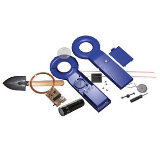 Найди клад! Это вполне возможно, ведь теперь в твоем арсенале есть все необходимое — настоящий металлоискатель, фонарик, лопатка и книга с подробными инструкциями. Даже если клад сразу найти не получится, ты все равно получишь кучу удовольствия от самого процесса. Иногда для поиска кладов используют специальные рамки из проволоки. Ты сможешь сделать из проволоки рамку для поиска клада и испробовать ее на практике. А еще в этом чемодане есть игры для юных кладоискателей, а также интересные истории о самых знаменитых кладах. Будет весело и интересно! В комплекте Книги 24 страницы с цветными иллюстрациями (2 штуки) Металлоискатель (в разобранном виде) Фонарик Лопатка Толстая медная проволока Стрелка Фишки None