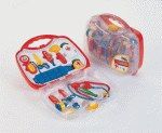 В наборе: Стетоскоп, термометр, шприц, градусник, молоток, дополнительные аксессуары. Материал: пластмасса. Производство Германия (Klein). None