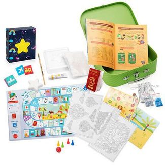 Пора отправиться в кругосветное путешествие! Разумеется, для этого вам понадобится чемоданчик, который удобно брать с собой в дорогу. "Чемоданчик с развлечениями" - не только полезный аксессуар, но и большой игровой набор для детей, внутри которого скрывается множество сюрпризов: раскраски, настольные игры, наборы для творчества и наклейки. Внутри вы также найдете яркую книжку-инструкцию, с помощью которой можно устроить настоящее приключение, не выходя из дома. А в паспорт путешественника можно проставлять визы за каждое выполненное задание. Конечная цель - большая звезда путешественника! В комплекте Книжка-инструкция с заданиями Паспорт путешественника Игра-ходилка, фишки и кубик для игры 30 карточек для игры "Мемо" Открытки-раскраски 3 шт. Набор для создания поделки "Талисман" Набор для создания "Звезды путешественника" из гипса, кисточка, акриловая краска Набор с многоразовыми наклейками Набор наклеек для украшения чемодана None
