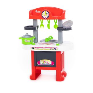 Комплекс "BU-BU" №5 – это маленькая кухня с плитой, мойкой и духовым шкафом. Дизайн данного комплекса также предусматривает наличие двух полочек. Набор дополнен игрушечной посудой: