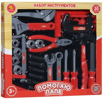Набор инструментов Помогаю Папе 30 предметов станет приятным подарком для юного механика. Яркие ключи, крепежные и прочие элементы, изготовленные из качественного прочного пластика, позволят ребенку приобрести полезные навыки, научиться определять названия и назначения различных инструментов и изучить сферы их применения в быту. Набор упакован в коробку с прозрачным окном. Минимальная сумма заказа 1500 руб. Возможен самовывоз. Есть доставка.