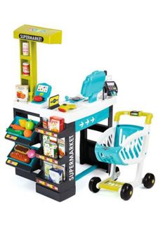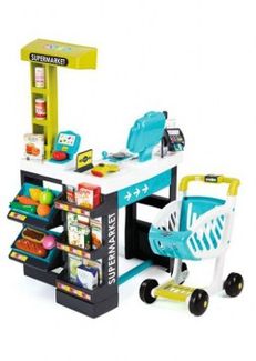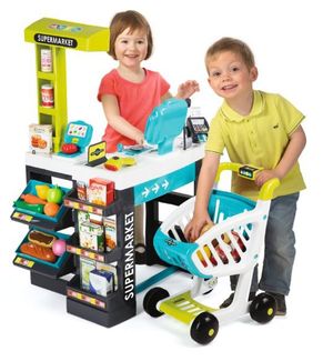 Супермаркет Smoby с тележкой имеет все то, что есть и в настоящем супермаркете. Здесь можно взвесить продукты и оплатить покупки банковскими картами через терминал, купить овощи, фрукты и многие другие продукты, положив их в тележку. Продавец супермаркета посчитает стоимость покупки на ЖК-экране, просканировав товар на кассе. Наличные, Visa/MasterCard, Яндекс.Деньги, WebMoney Возможен самовывоз. Есть доставка.