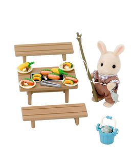 Набор Отдых на природе Sylvanian Families со столом, скамейками и аксессуарами, среди которых хот-доги, кукуруза и другие лакомства. А еще в набор входят принадлежности для рыбалки - ведерко, удочка и рыбка, которую необходимо поймать. Материал - пластик. Игрушка в комплект не входит. Возраст - для детей старше 3 лет. Минимальная сумма заказа 1500 руб. Возможен самовывоз. Есть доставка.