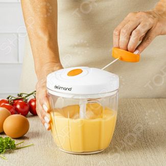 Ручной измельчитель Delimano Брава XXL это чудо-устройство, которое пригодится на каждой кухне и подарит море положительных эмоций. Быстрый эффективный прибор измельчит и взобьет ингредиенты на раз-два-три! Вместительная чаша с рабочим объемом 500 мл полный объем 900 мл позволит обрабатывать большое количество продуктов, что значительно ускорит процесс приготовления. Универсальная комплектация Противоскользящее основание прибора предотвратит возможное падение с кухонного стола. В комплектацию ручного измельчителя Delimano Брава XXL входят два аксессуара: насадка с 5 лезвиями для измельчения; насадка-лопатка для смешивания и взбивания. Не требуется источник питания Ручной измельчитель Delimano Брава XXL работает без подключения к сети и не требует установки батареек. Потяните ручку устройства несколько раз и готово! Прозрачный контейнер позволит наблюдать за процессом обработки и регулировать степень измельчения, смешивания и взбивания. Измельчение, смешивание, взбивание быстро! Особая система конструкции позволяет совершать минимум движений и получать максимальный результат за один цикл насадки делают 8 оборотов, что позволяет моментально измельчать, взбивать и смешивать. Самые разнообразные фрукты и овощи, орехи, сыры, колбасы, шоколад, зелень, листья салата, зубчики чеснока разрезаются 5 лезвиями из высококачественной нержавеющей стали. Лезвия двигаются на разной высоте и обеспечивают качественное измельчение до однородной массы, что отлично подходит для приготовления самых разнообразных овощных и фруктовых пюре. Превратите ручной измельчитель в миксер! Для этого установите лопатку, которая подготовит ингредиенты для воздушного омлета, домашнего майонеза, соусов, подливок, заправок, маринада. Компактный и легкий Вы будете наслаждаться временем, проводимым на кухне, поскольку этот компактный помощник измельчит, взобьет и смешает продукты за считанные секунды. Вас порадует простота эксплуатации вставьте насадку, положите продукт, закрепите крышку и потяните за