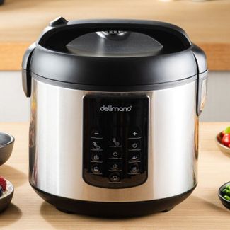 Мультиварка Delimano Оптимо 7 в 1 мощностью 860-1023 Вт, оснащенная чашей 5 л с антипригарным покрытием, представляет собой многофункциональное и современное устройство с отменными характеристиками и впечатляющим набором возможностей. Для приготовления блюд предусмотрено 6 автоматических программ и режим ручной настройки. Есть защита от перегрева, автоматическое выключение по истечении 2-х минут бездействия и окончания приготовления , функции отложенного старта, поддержания тепла. Прибор управляется нажатием кнопок, информация отображается на LED дисплее. В комплекте предусмотрены дополнительные пластиковые аксессуары: контейнер-пароварка, ложка, половник, мерный стаканчик. Благодаря стильному и эстетичному исполнению устройство органично впишется в интерьер любой современной кухни. Ощутимая экономия времени и сил В одном компактном приборе совмещено множество удобных и необходимых функций, позволяющих готовить невероятно вкусную и полезную пищу. Предлагаем купить мультиварку Delimano Оптимо 7 в 1 она заменит вам кастрюлю, сковороду, медленноварку, духовку, микроволновку, пароварку. Одним нажатием кнопки вы без труда потушите овощи, поджарите мясо, рыбу, птицу, приготовите супы, каши, йогурты, блюда на пару. Вы забудете о том, как часами готовили на кухне, а затем еще долго мыли посуду. Готовка еще никогда не была такой быстрой, простой и удобной! 6 автоматических программ и режим ручной настройки Мультиварка Delimano Оптимо 7 в 1 идеально подходит для приготовления пищи к праздничному столу или для повседневного использования. Модель значительно упрощает и ускоряет процесс создания блюд. В устройстве присутствует 6 автоматических программ, воспользовавшись которыми вы получите каши, супы, йогурты, паровые блюда, жареную или тушеную пищу. Режим ручной настройки, дает вам возможность самостоятельно регулировать диапазон времени 1 мин 12 ч, шаг 1 мин и температуры 30 C 150 C, шаг 10 C , чтобы готовить блюда по своим рецептам. Этот девайс прекрасно справляется с любы