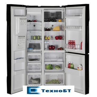 Холодильник Hitachi R-M 702 GPU2 GBK - компактная и ёмкая модель Side-by-Side, выполненная в стильном дизайне Glass Door и работающая на инверторном компрессоре.Инверторный компрессор потребляет меньше электроэнергии по сравнению с обычными, обеспечивает тихую работу и долгий срок службы холодильника. В отличие от обычных компрессоров, работающих "скачками" (холодильник резко включается и выключается), инверторный компрессор плавно регулирует работу устройства в зависимости от его потребностей.Прохладная чистая вода и аккуратные кубики льда всегда к вашим услугам благодаря специальным диспенсерам танкового типа, которые защищают воду и лёд от запахов других продуктов. Вода доступна даже без открытия дверцы: вы лишний раз не открываете холодильник, а значит, не расходуется электроэнергия на поддержание в нём нужной температуры.В отделении с повышенной влажностью (около 90%) овощи надолго сохранят свежесть. Эффективная система Dual Fan Cooling обеспечивает равномерную циркуляцию воздуха в холодильной камере, доставляя охлаждённый воздух даже в закрытые секции, а фильтр Nano Titanium предупреждает появление бактерий и неприятных запахов.Благодаря уникальной низкопольной конструкции Hitachi R-M 702 GPU2 GBK и малогабаритному испарителю этот компактный холодильник (глубина всего 60 см) чрезвычайно вместителен. Эффективное расположение полок и лоток для льда на двери обеспечивают максимум пространства для хранения продуктов. Предусмотрен специальный карман для молочных продуктов. Полки из закалённого стекла можно переставлять, а в больших контейнерах поместятся даже крупные предметы.Плоская сенсорная панель управления с индикатором мощности охлаждения позволяет изменять настройки простым прикосновением. Покрытие дверцы из закаленного стекла обеспечивает дополнительную защиту от царапин и облегчает процесс уборки. Дверной уплотнитель устойчив к загрязнениям, а благодаря системе No Frost холодильник не придётся разморажив