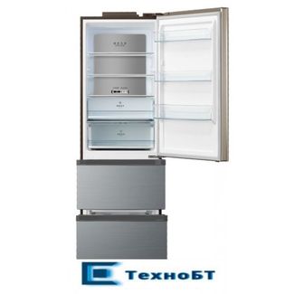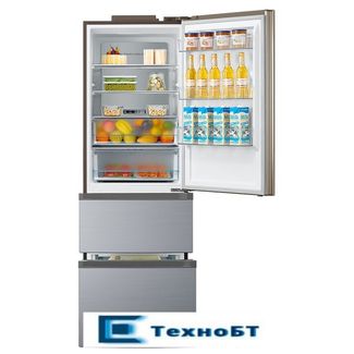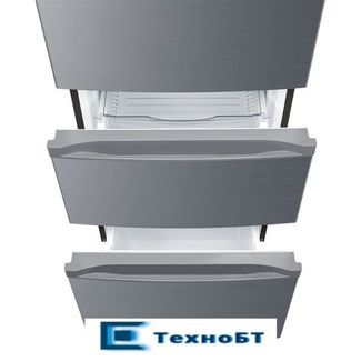 Сенсорное управление «Smart Touch»Управление температурой стало возможно всего одним касанием! Очень удобно выбирать не только температуру, но и дополнительные функции, индикаторы которых находятся рядом с дисплеем. Система авторазморозки «No Frost»Система «No Frost» избавляет вас от необходимости постоянно размораживать камеру благодаря автоматической системе удаления инея. Вместо разморозки можно заняться приятными и полезными делами! Динамическое охлаждениеСпециальный вентилятор в холодильной камере обеспечивает перемешивание воздуха и соответственно равномерное распределение температуры. Также динамическая система способствует уменьшению, смешиванию запахов в холодильнике и быстрому охлаждению большого количества продуктов. Цифровой дисплейВ данном приборе есть электронный дисплей, на экране которого вы можете увидеть, какая температура сейчас установлена в вашем холодильнике. Светодиодное освещение «LED Light»Светодиодное освещение является самым экономичным и эффективным. Яркое и равномерное освещение камеры помогает моментально найти необходимый продукт, прочитать состав и рекомендации по срокам его хранения, не прибегая к дополнительной подсветке кухонного пространства. Зона свежестиДополнительный контейнер, расположенный рядом с зоной морозильного отделения, устанавливает уникальный микроклимат, который в сочетании с пониженной температурой позволяет дольше сохранять вкус, питательные вещества и свежесть большинства видов продуктов, в особенности фруктов и овощей. Функция интенсивного охлаждения «Super Cool»Если вам нужно охладить большое количество продуктов после посещения магазина или при подготовке к семейному торжеству, тогда вам поможет функция «Super Cool»! Она установит необходимую температуру внутри холодильника, чтобы продукты были охлаждены моментально! Функция быстрого замораживания «Super Freeze»<