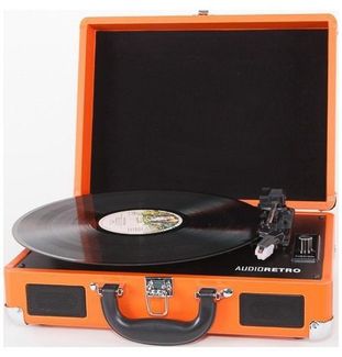 3-скоростной проигрыватель пластинок 331/3/45/78 об/мин; Автостоп; Bluetooth; Выход для подключения к аудиосистеме; Встроенные стерео динамики; Корпус в виде чемодана; AC адаптер питания в комплекте; Цвет: красный, голубой, оранжевый, белый; None