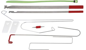 Особенности: Набор включает все необходимые инструменты для открывания дверей автомобилей разных марок и моделей. Позволяет разблокировать замки дверей автомобиля механическим способом, не нанося повреждений декоративным элементам (резиновым уплотнителям, молдингам и т.д.). Специальная отмычка для вскрытия крышки бензобака. Удобный чехол для хранения инструмента.