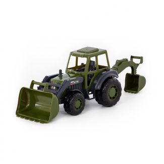 Военный трактор-экскаватор из серии игрушек военной тематики.Эта игрушка точно не оставит равнодушным Вашего ребенка.Трактор имеет военную раскраску. None