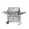 Портативный гриль-барбекю, газовый позволит быстро и вкусно приготовить мясо, рыбу или овощи на открытом воздухе в большом количестве. Данная модель характеризуется наличием трех основных (мощностью по 3.7 кВт) и одной дополнительной боковой газовой горелки (мощность - . 4,5 кВт). При этом общая площадь жарочной поверхности составляет 63*48 см. Среди дополнительных преимуществ можно отметить двухуровневую крышку, которая изготовлена из нержавеющей стали, возможность установки в ней дополнительной решетки для жарки, термостат, а также наличие боковой полки.