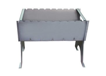 На бортиках изделия имеются насечки для шампуров. Идеально подобранные размеры топки 50 на 34 см, позволяют разместить на мангале самые распространенные решетки. Ножки имеют небольшие платформы, которые придают устойчивости на ровной поверхности и не дают проваливаться в мягкую землю или песок.