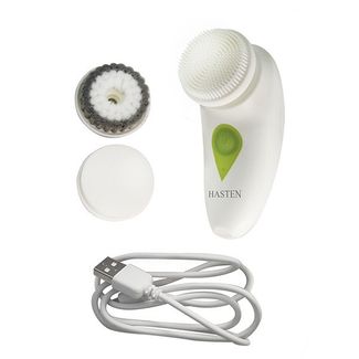 В комплекте 3 насадки: латексный спонж, мягкая синтетическая щетка и силиконовая щетка. Вращение насадок осуществляется на 360 градусов, что обеспечивает быструю и качественную чистку кожи. Массажер-очиститель HAS100 через каждые 20 секунд прерывает работу на 0,5 секунды для перехода на другой участок кожи лица, что очень удобно. Прибор подходит для всех типов кожи. В комплект прибора HAS100 входит 3 насадки: