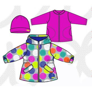 Куртка, съемный жакет, шапка.Куртка светло-серого цвета с дизайнерским принтом в крупный горох разных цветов. Технологичная ткань с водоотталкивающим покрытием сохранят тепло в прохладную, сырую погоду. Трикотажная подкладка куртки подходит для любой погоды и очень комфорта в использовании.Съемный яркий жакет из качественного микрофлиса можно использовать как пристегнутым к куртке для дополнительного утепления, так и отдельно.Куртка.Верх: 100% полиэстер, 600mm водоотталкивающая пропитка верха ткани.Подкладка: трикотаж - 65% полиэстер, 35% хлопок.Съемный жакет и шапка: микрофлис 200 gsm. None Можно купить без предварительного заказа.
