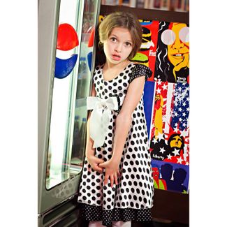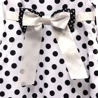 Чудесное нарядное платье для юной модницы. Короткий рукав, круглый ворот с пуговицей для удобства застегивания, потайная молния сбоку, двойной подол, принт в крупный горох. Декорировано симпатичным атласным бантом на поясе. Оригинальное и нарядное платье замечательно подойдет для праздников, торжественных мероприятий и событий. Потрясающий дизайн и отличное качество обязательно понравится вам и вашей малышке. None Можно купить без предварительного заказа.