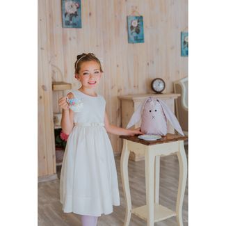 Чудесное детское платье нежного кремового цвета. Сдержанность покроя и мягкие цвета делают этот наряд элегантным и наделяют его обладательницу особым шармом. В комплекте вместе с платьем предоставляется ободок с бантиком, который отлично дополнит образ юной принцессы. None Можно купить без предварительного заказа.