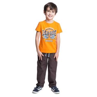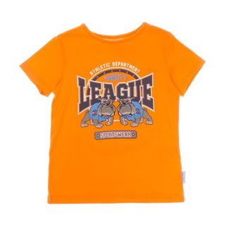 Яркая хлопковая футболка с короткими рукавами. Украшена резиновым принтом, на воротнике мягкая резинка. None Можно купить без предварительного заказа.