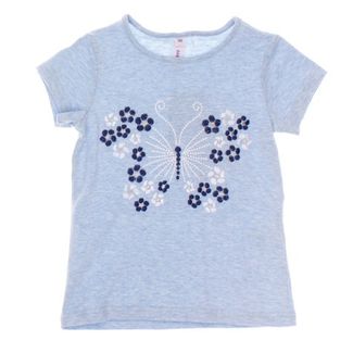 Мягкая хлопковая футболка с короткими рукавами. Стильный цвет голубой меланж. Украшена большой вышивкой-бабочкой вместо принта. None Можно купить без предварительного заказа.