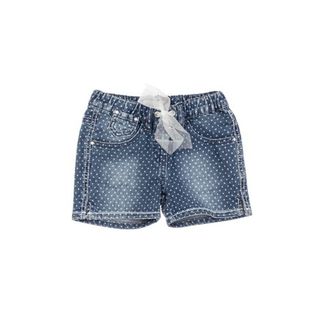 Стильные джинсовые шорты в белый горошек. Пояс на резинке, дополнительно утягивается белой атласной лентой. Есть шлевки для ремня и 4 функциональных кармана. None Можно купить без предварительного заказа.