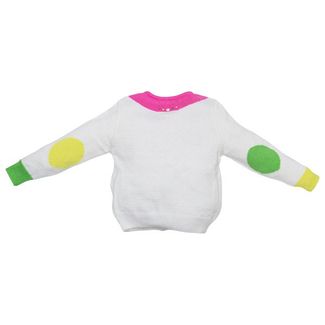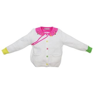Восхитительный жакет для маленькой модницы из мягкой хлопковой пряжи. Модельная особенность - имитация отложного воротничка контрастного цвета, украшенного термоаппликацией из разноцветных веселых фигурок. Жакет на пуговицах с круглым вырезом горловины и декоративными завязками. Модель декорирована цельновывязаными карманами, яркими контрастными налокотниками и разноцветными резинками по низу рукавов. Такой изящный жакет добавит образу маленькой модницы индивидуальность и подчеркнет уникальный эстетический вкус None Можно купить без предварительного заказа.