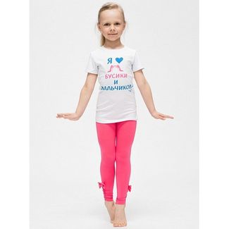 Стильная и удобная футболка для девочки! Короткий рукав, круглый вырез на вороте. Изделие декорировано милой забавной надписью. Натуральный материал не раздражает детскую кожу, позволяя ей дышать. Футболка универсальна и замечательно подойдет как для домашней носки, так и варианта в десткий сад, а также для занятия спортом. Идеальный вариант для демисезонного гардероба. None Можно купить без предварительного заказа.
