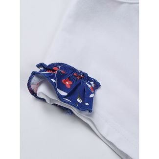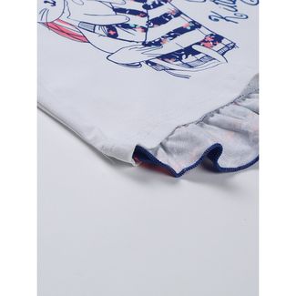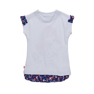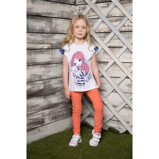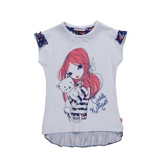 Футболка из трикотажной, мягкой ткани для девочки с коротким рукавом и удлиненной спинкой. Декорирована оригинальным принтом. None Можно купить без предварительного заказа.