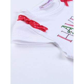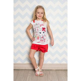 Стильная футболка из трикотажной, мягкой ткани для девочки с коротким рукавом. Декорирована оригинальным принтом бантиками. None Можно купить без предварительного заказа.