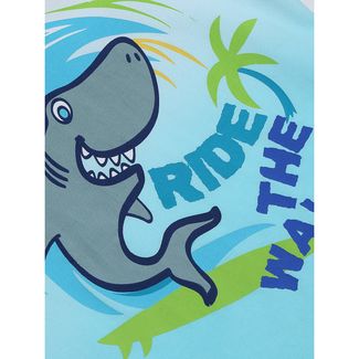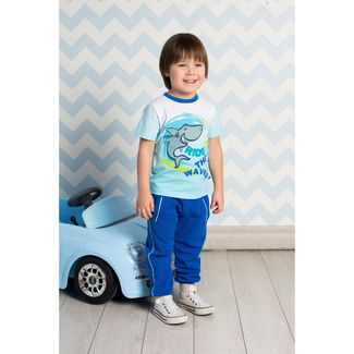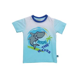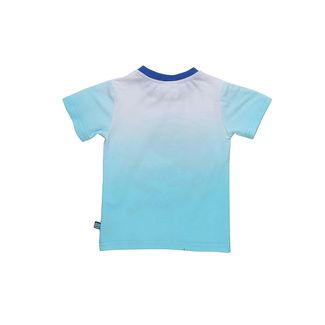 Бело-голубая футболка с градиентным переливом для мальчика. На груди принт с изображением рыбы. Вырез обработан контрастным кантом. None Можно купить без предварительного заказа.