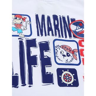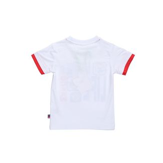 Классическая белая футболка со стилизованным модным принтом и декоративной нашивкой. Рукава с двойным кантом контрастного цвета. None Можно купить без предварительного заказа.