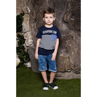 Футболка из трикотажной ткани в полоску для мальчика с коротким рукавом. Декорирована кармашком и оригинальным принтом. None Можно купить без предварительного заказа.