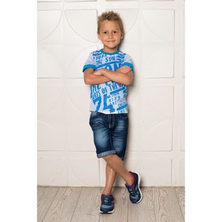 Футболка из трикотажной ткани для мальчика с коротким рукавом. Декорирована оригинальным принтом. Рукава и горловина выполнены из контрастной ткани. None Можно купить без предварительного заказа.
